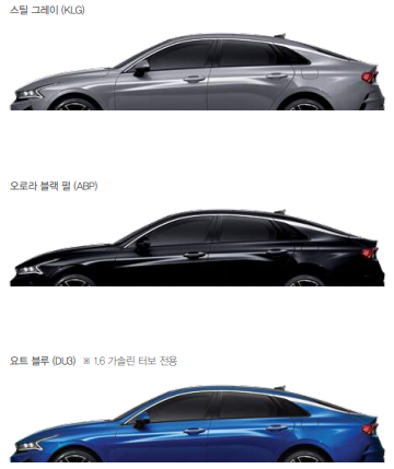 k5 외관의 경우 총 6가지 컬러를 선택 가능합니다.