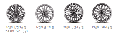 물론 하이브리드 모델에는 17인치, 18인치 휠만 적용되는데요