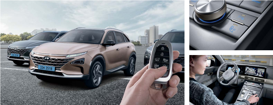 원격 스마트 주차 보조를 활성화한 후 주차 공간을 발견하게 되면 차량 내 안내에 따라 하차한 다음, 스마트키의 작동 버튼을 누르고만 있으면 자동으로 주차를 도와줍니다.