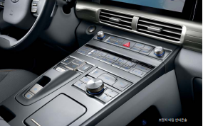 전자식 변속 버튼 일반적인 형태의 기어노브가 아닌 버튼을 누르는 방식을 적용해 직관적이면서도 미래지향적인 이미지를 구현합니다.