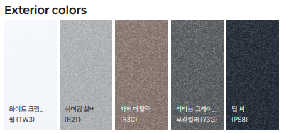 외관 색상의 경우 위처럼 총 다섯 가지 색상이 선택 가능합니다.