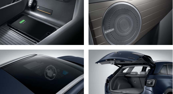 12.3인치 내비게이션(블루링크, 폰 프로젝션), 내비게이션 무선 업데이트, 일반 사운드 시스템(6스피커, 외장앰프, 블루투스 핸즈프리), 멀티미디어용 USB 단자(1열, 1개)