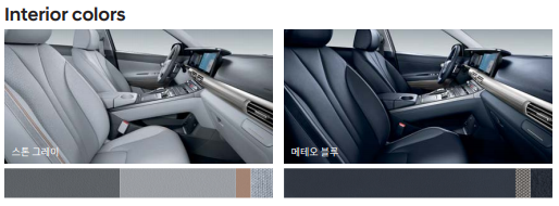 실내 색상은 스톤 그레이와 블루 색상으로 두 가지 선택이 가능합니다.
