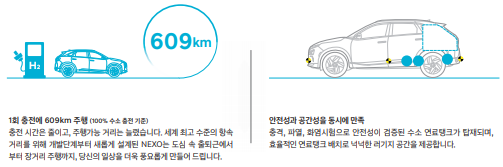 수소 전기차 NEXO는 수소와 산소가 반응하여 만들어진 전기에너지가
