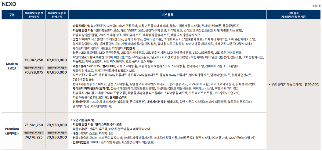 2021 현대 수소차 넥쏘 옵션, 가격