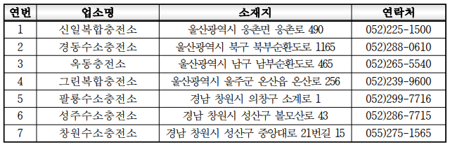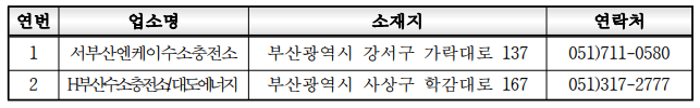 부산에는 두 곳의 수소충전소가 위치합니다.