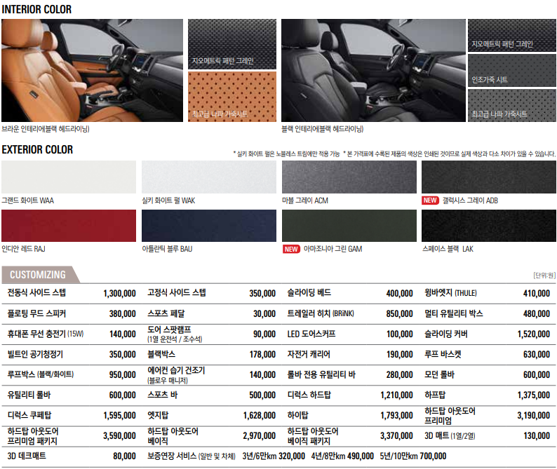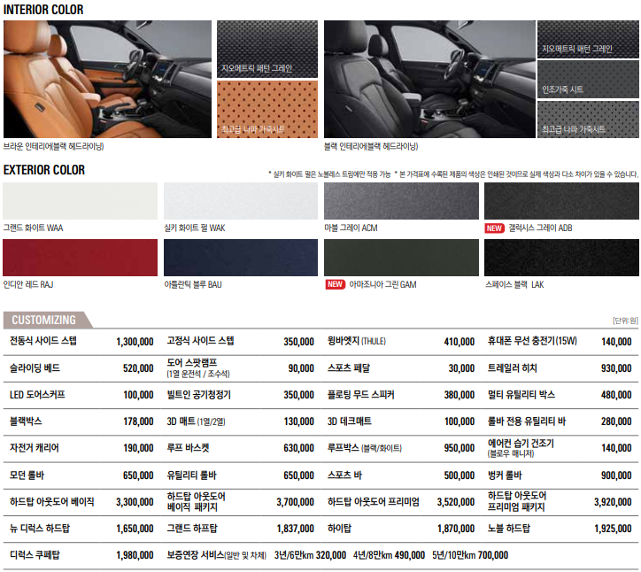그럼 렉스턴 스포츠/ 렉스턴 칸 모델 트림별로 옵션 및 가격을 본격적으로 알아보겠습니다.