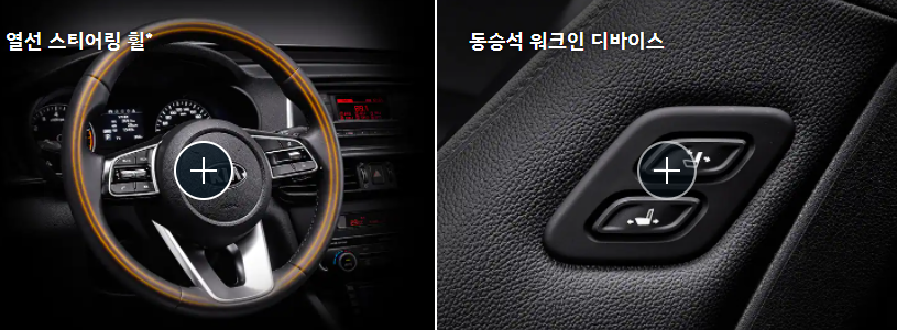| • 동승석 파워시트 +동승석 전동식 허리지지대 +동승석 워크인 디바이스 300,000 •LED 리어콤비네이션램프 300,000 • 후측방 충돌경고 + 후방 교차 충돌경고400,000 |