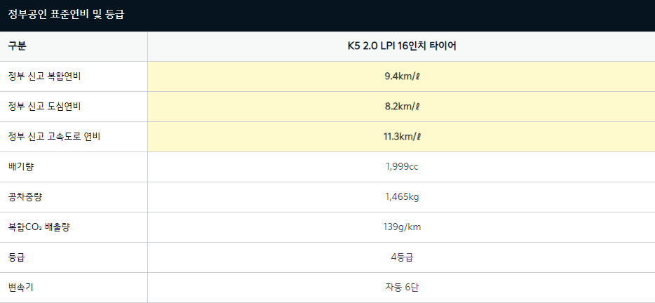 2021 k5 택시 연비는 복합연비 9.4km/l 로 나타납니다.