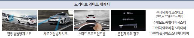 전 트림에서 드라이브 와이즈 패키지를 110만원에 선택 가능합니다.