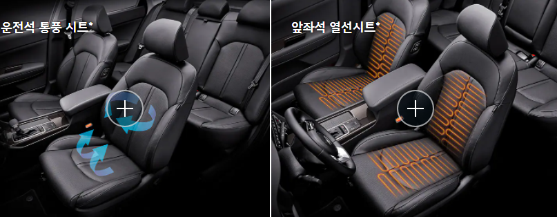 운전석 경우 통풍시트 추가는 필수로 보이며 30만원의 추가금이 붙습니다.