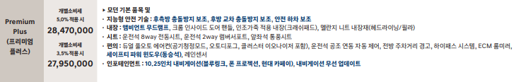 쏘나타 프리미엄 플러스 기본 품목 포함