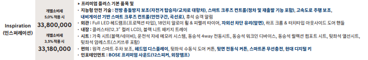 - 2021 쏘나타 센슈어스 가격, 가격표