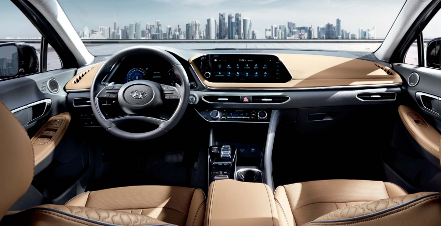 2021 소나타 센슈어스 실내 내장은 카멜, 블랙, 그레이 투톤, 네이비 등 총 4가지 컬러로 적용됩니다.
