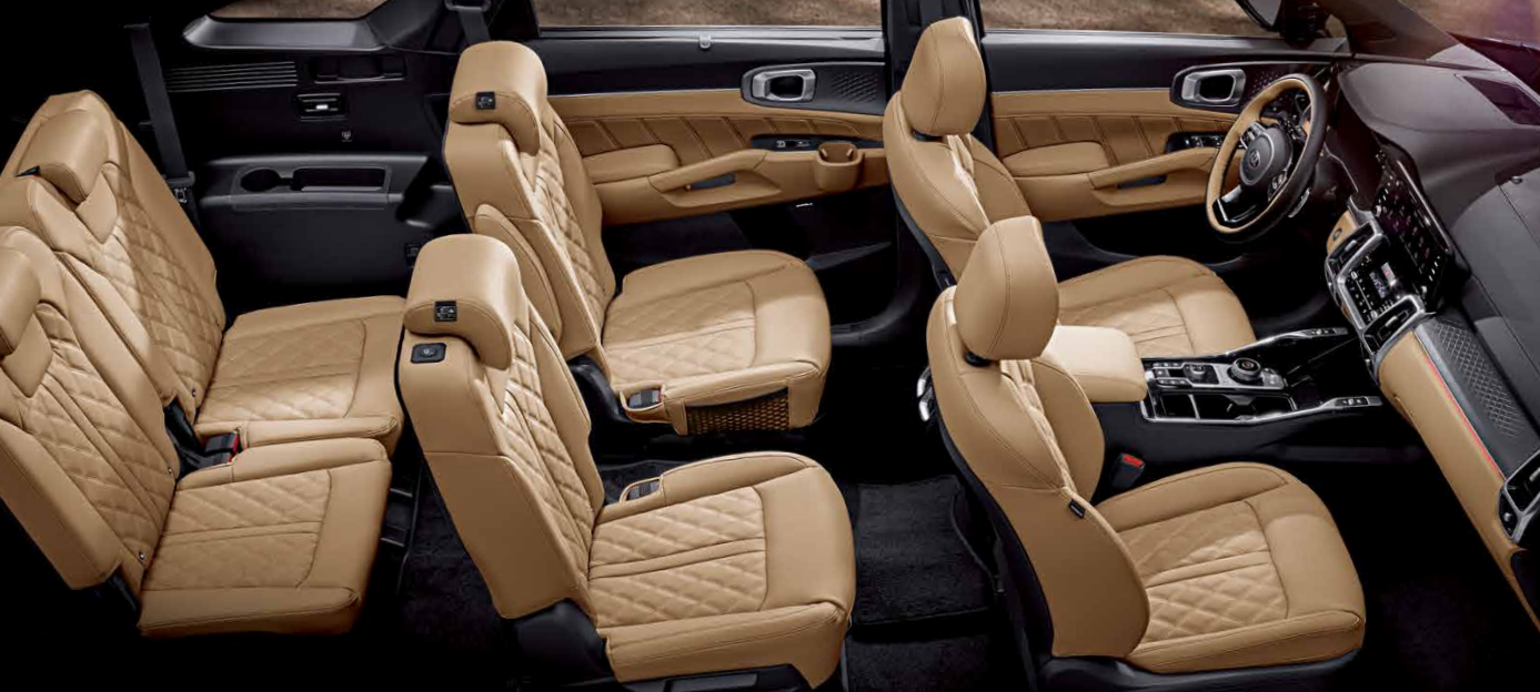 2021 쏘렌토 하이브리드 실내공간은 매우 넓은 모습을 보여줍니다.