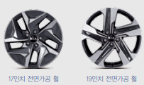 쏘렌토 하이브리 휠은 17인치와 19인치 두 가지로 존재합니다.