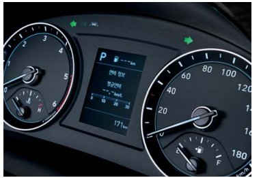 포터 2 계기판도 트립 컴퓨터가 위치하여 주행정보에 관한 내용을 제공받을 수 있습니다.