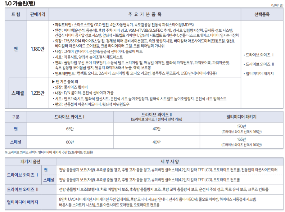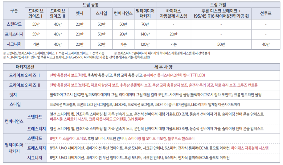 각 트림별로 구성 옵션, 가격에 대하여 한번 알아보겠습니다.