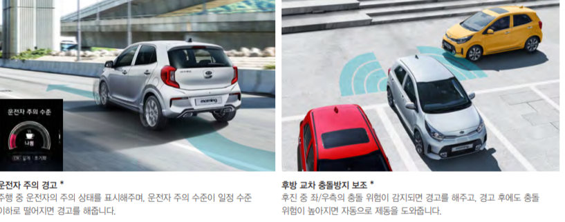 이번 신형 모닝의 가장 좋은 점은 안전, 주행 관련한 편의사양이 대거 추가되었다는 점입니다.