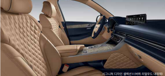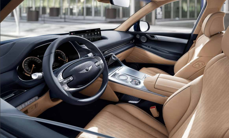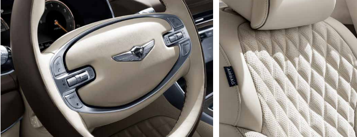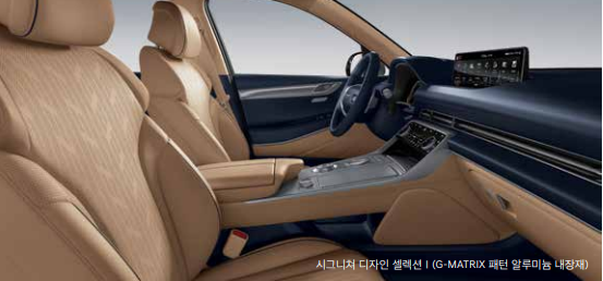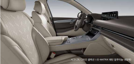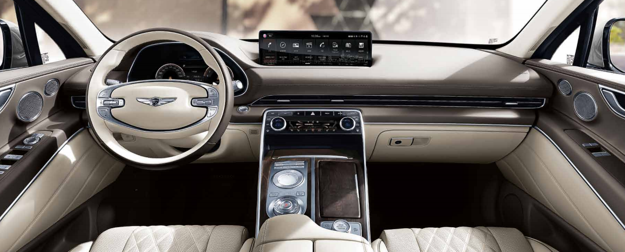 다양한 색상의 실내좌석의 시트의 고급스러움은 gv80 실내 디자인에 정점을 찍었습니다.