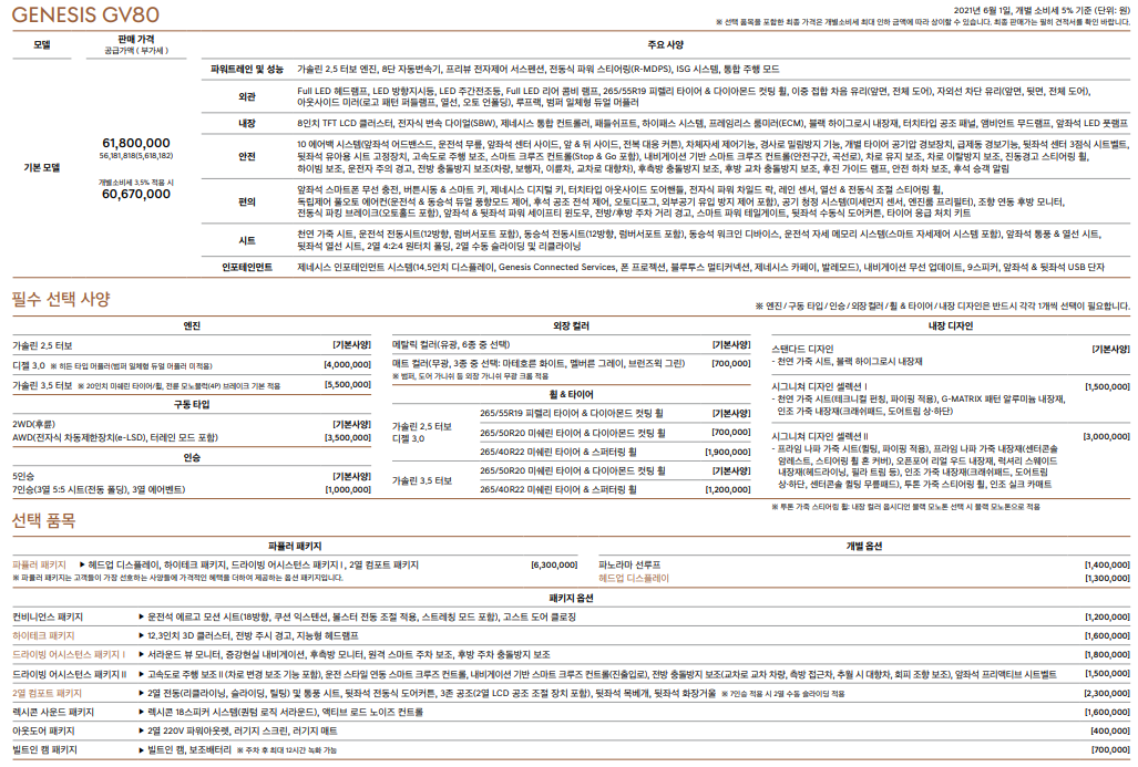 제네시스 SUV 신형 gv80 사양, 가격 정보