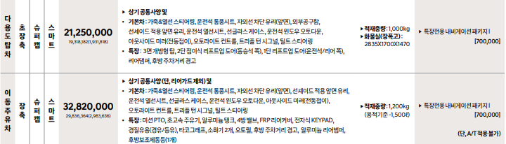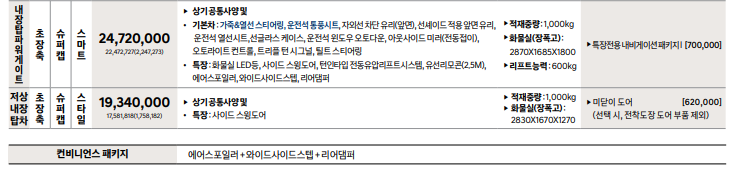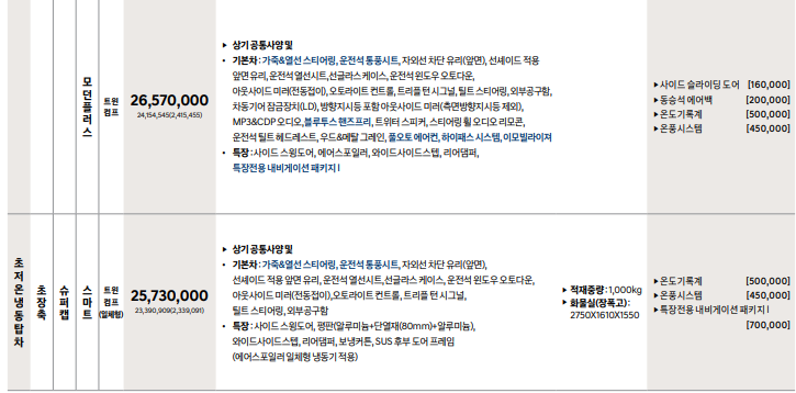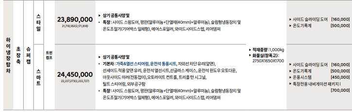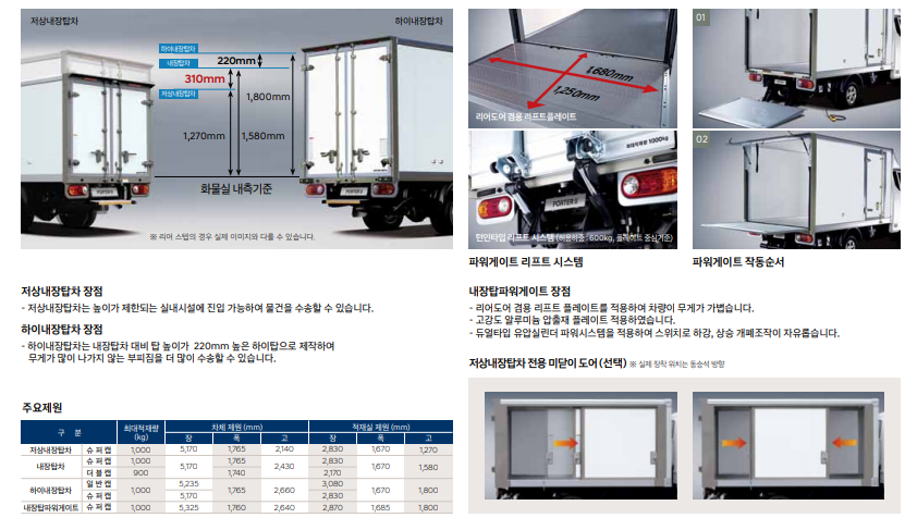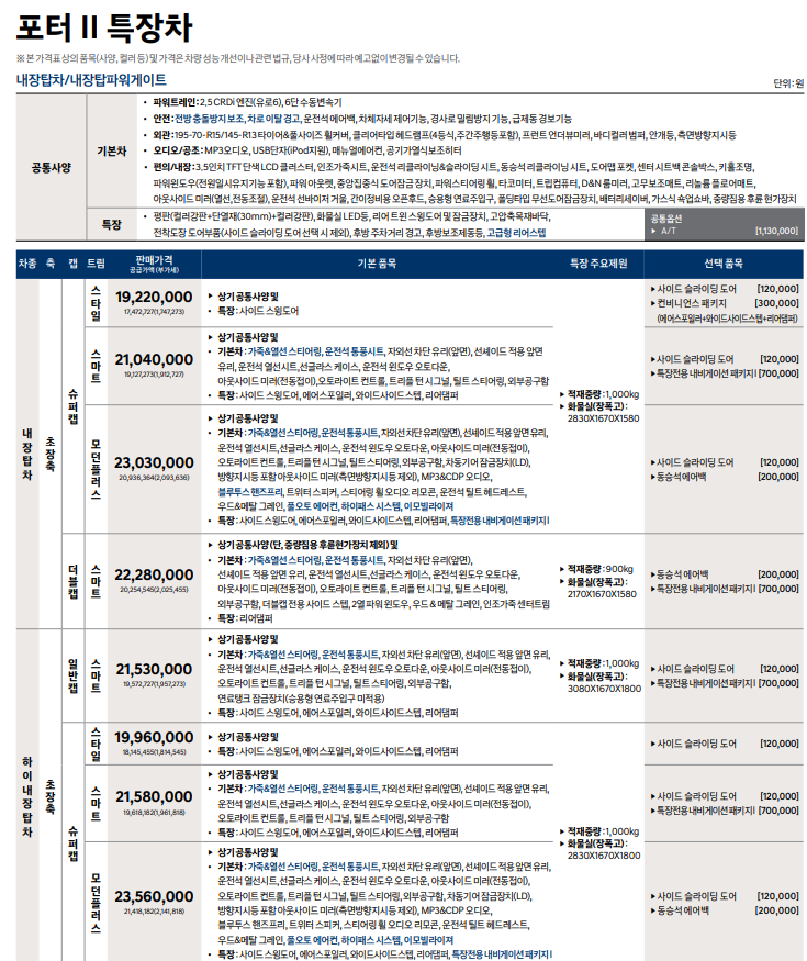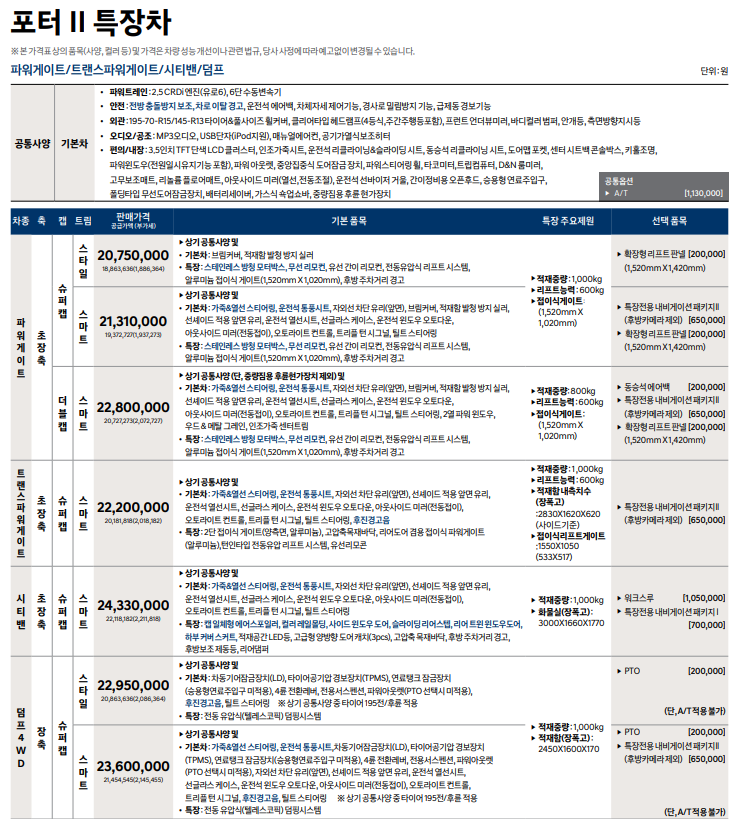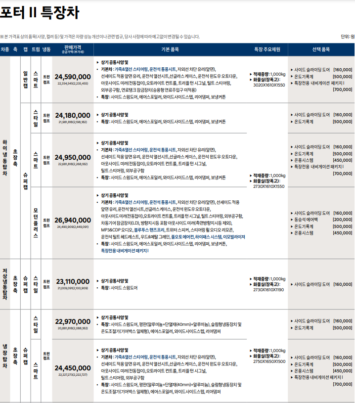 포터 2 탑차, 냉장차, 특장차 어떠한 사양이 존재?