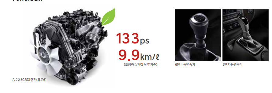 2.5 디젤 엔진을 적용하였으며
