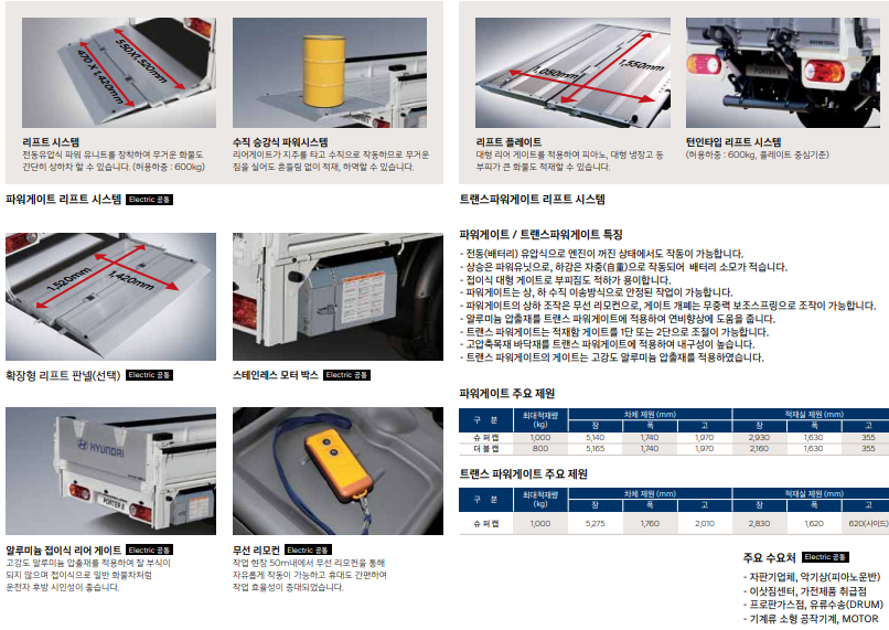특히, 탑차 파워게이트는 리프트 플레이트를 적용하여 차량 문 하강 상승 개폐 조작이 자유롭습니다.
