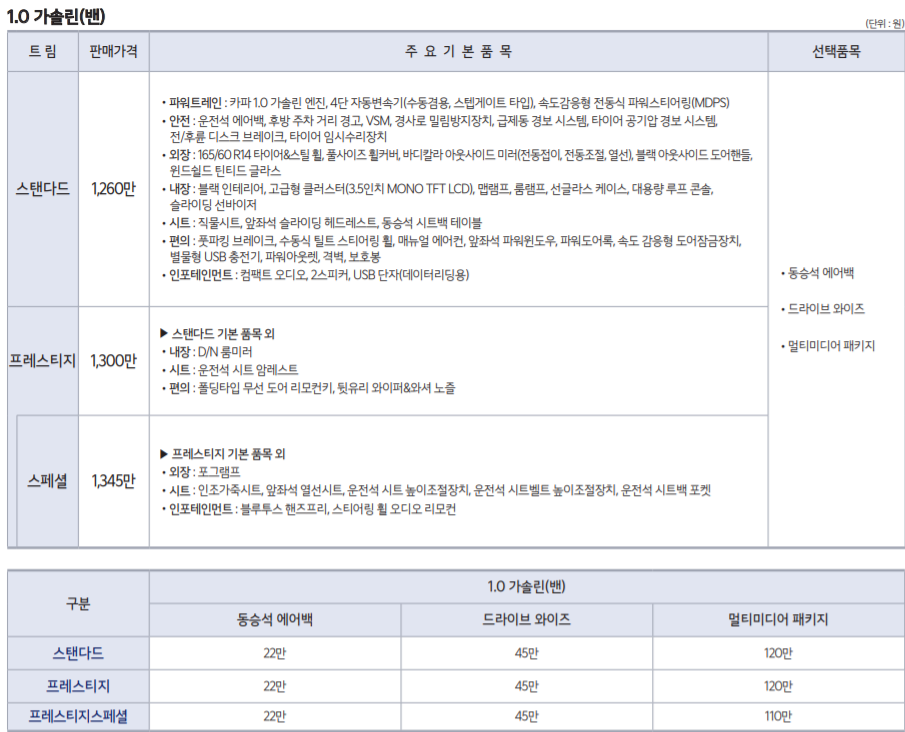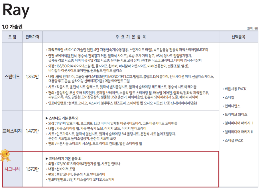 경차에 이러한 편의사양을 선택하거나 고를 수 있다는 점은 긍정적으로 보입니다.