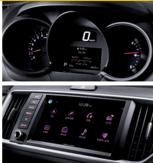 8인치 UVO 내비게이션, 내비게이션 무선 업데이트, 후방 모니터, 샤크핀 안테나