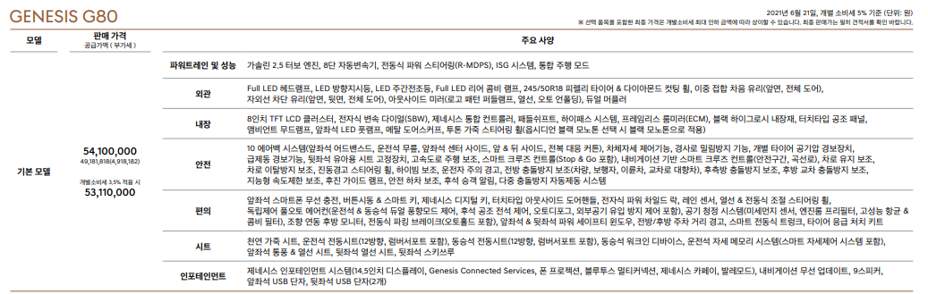 2021년 6월 21일, 어제 제네시스 2022년형 g80이 출시되었습니다.