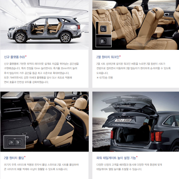 신형 쏘렌토는 동급 suv 중에서도 넓은 실내 공간을 자랑합니다.