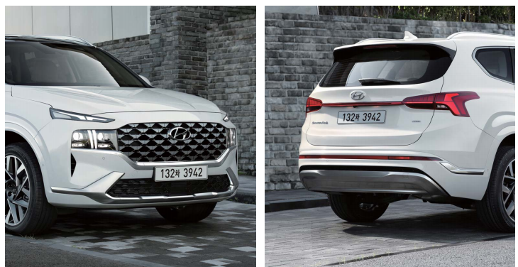 싼타페 하이브리드와 쏘렌토 후면 및 측면 디자인 비교