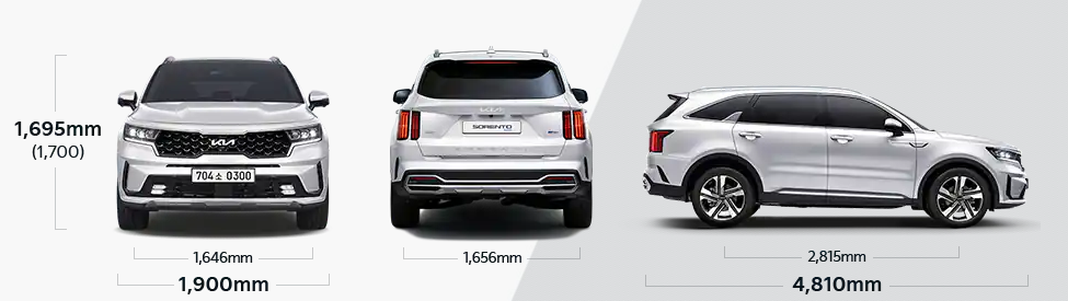 전장은 물론, 휠 베이스 공간 등의 크기에서 쏘렌토 하이브리드가 싼타페 하이브리드에 비하여 다소 큰 사이즈를 보여주고 있습니다.