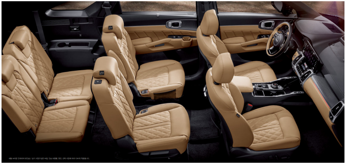 쏘렌토 하이브리드 실내 공간은 중형 suv임에도 큰 차체로 넓은 공간을 자랑하고 있습니다.