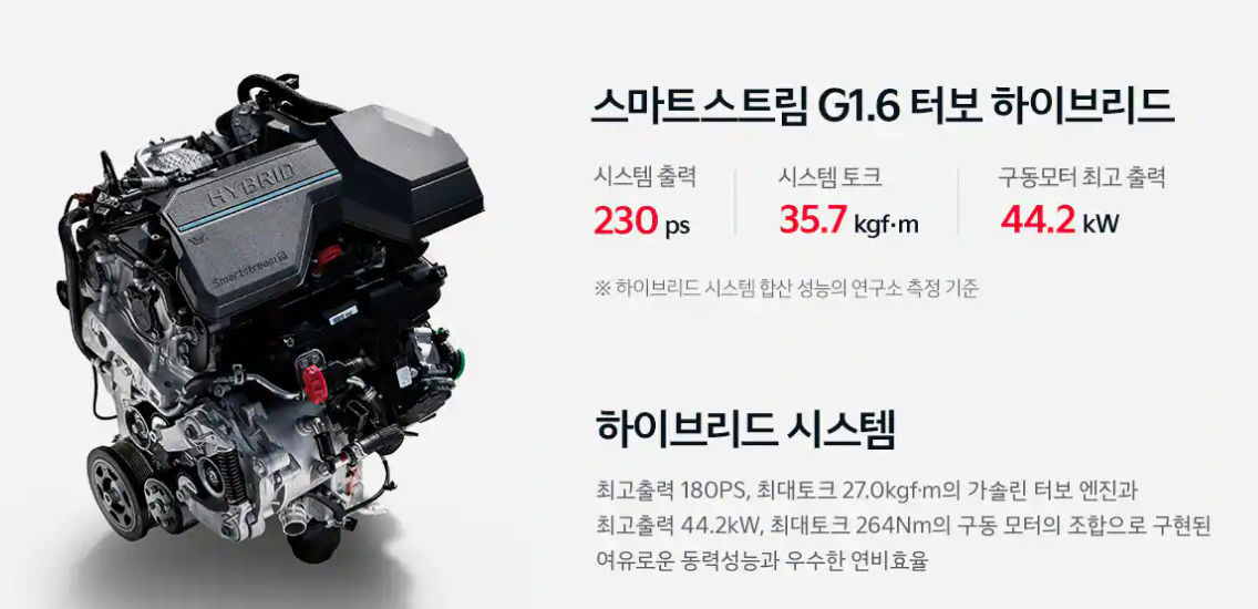 또한, 출력이나 토크 부문에서도 쏘렌토와 싼타페 하이브리드는 완전히 동일한 사양을 보여주고 있는데요,