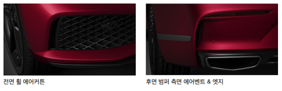 전면 휠 에어커튼 부분과 후면 범퍼의 측면 부분에도 공기 흐름을 원활하게 도와주는 에어커튼을 적용하여 기존의 모습에 비해 좀 더 스포티한 모습을 보여주는 것이 특징입니다.