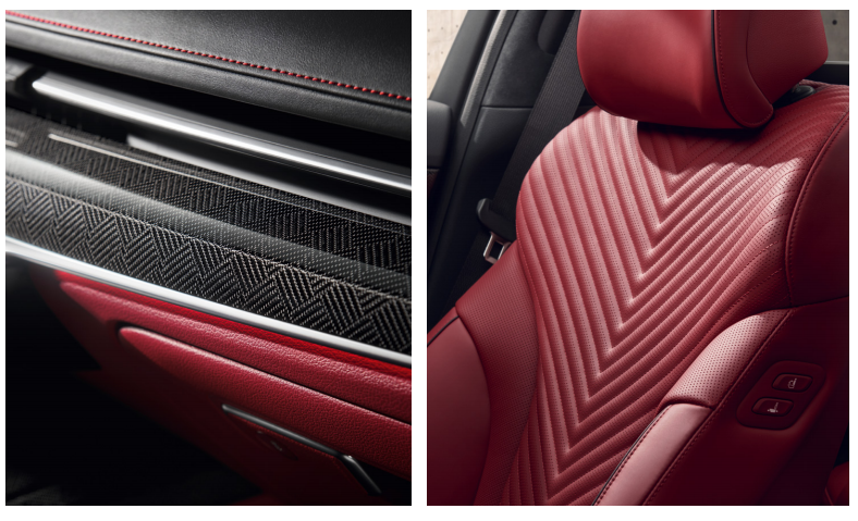 또한 리얼 카본 소재의 가니쉬를 통해 세련된 모습을 보여줌과 동시에 가죽 시트의 퀼팅 시트와 색상도 한층 더 스포츠카임을 보여주고 있습니다.
