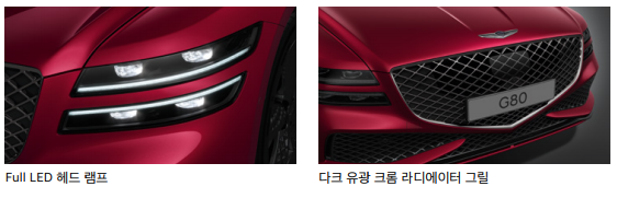 g80 스포츠에는 다크 유광 크롬 라디에이터 그릴이 적용되어서 좀더 블랙의 이미지를 보여주고 있습니다.