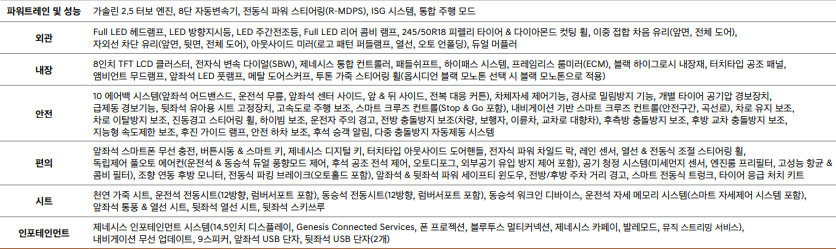 가솔린 3.5 기본 트림 모두 포함 이외 스포츠 패키지 성능 및 기능 포함