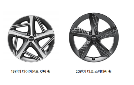 19인치와 20인치 각각에 g80 스포츠 전용 휠을 적용하였습니다.