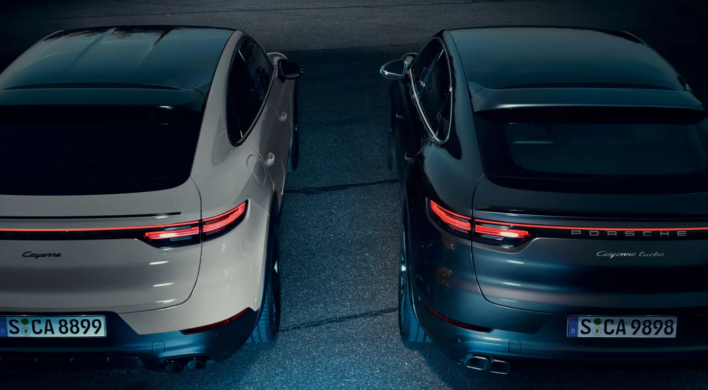 카이엔, 그리고 카이엔 쿠페 - 두 모델 모두 5 시트의 여유로움과 함께 강렬한 외관과 인상적인 퍼포먼스를 자랑합니다. 카이엔을 타고 친구들과 잊지 못할 여행을 떠나거나, 카이엔 쿠페의 상징적인 보디라인의 매력에 빠져도 좋습니다. 취향에 따라 즐기십시오. 어떤 모델을 선택하더라도 이 사실은 변하지 않습니다. 바로, 모든 포르셰는 무엇보다 스포츠카라는 점입니다.