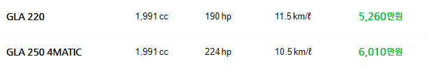 gla 가격 5,260만원 ~ 6,010만 원