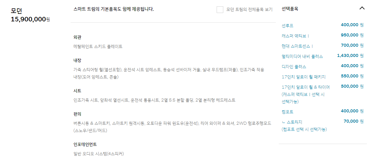 현대 캐스퍼 모던 트림