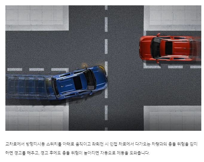 - 교차로 대항 차에 대한 전방 충돌 방지 보조 기능