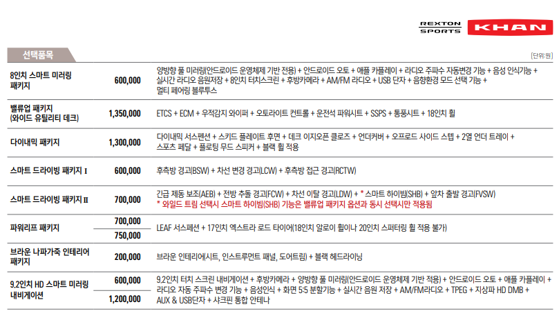 렉스턴 칸 와일드 기본 품목 포함 이외