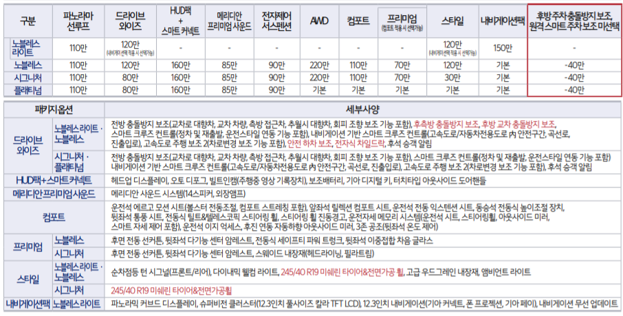 물론 구성 옵션, 선택 추가 옵션에 따라서 달라지긴 합니다만, 구매를 하기 위해서는 한 번쯤은 고려해보아야 할 안전, 편의 사양들을 알려드리겠습니다.