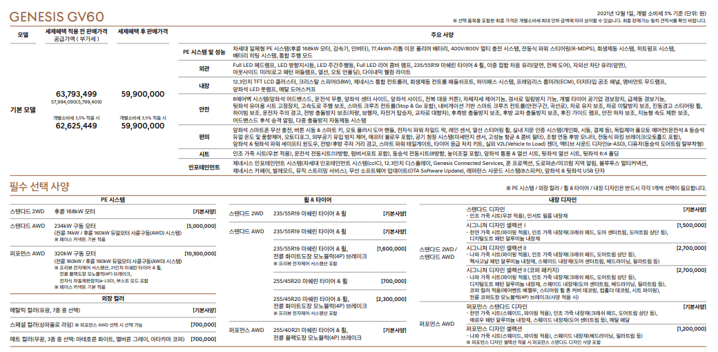 따라서, 제네시스에서도 gv60에 보조금이 적용될 수 있도록 가격을 5,990만 원에 책정하였습니다.