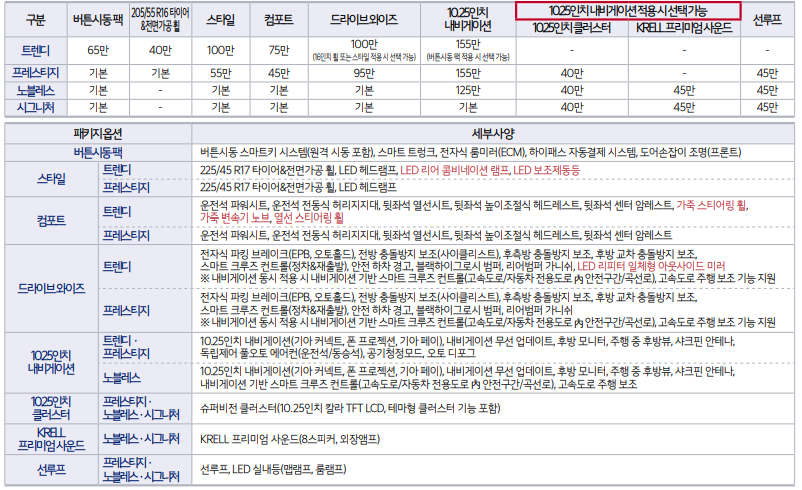하지만, 중간 트림에 적절한 옵션을 선택한다면 적절한 차량 구매가 될 수 있습니다.