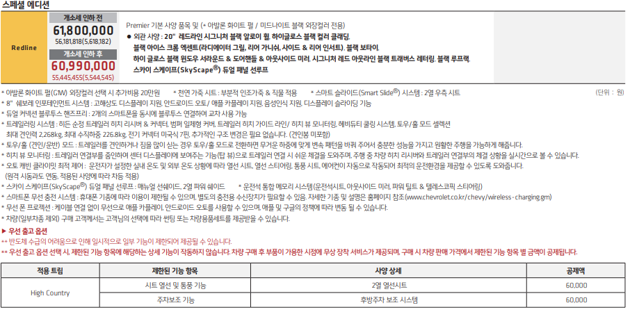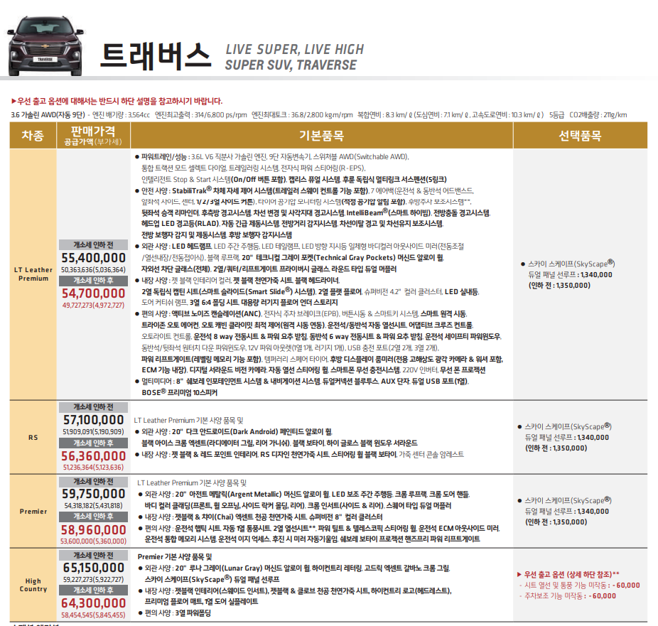 쉐보레 트래버스 하이 컨트리, high country 트림